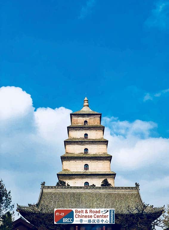 Merupakan tempat ibadah umat Buddha yang dibangun pada masa Dinasti Tang. Pagoda ini kini dikenal luas sebagai simbol kota dan menjadi daya tarik wisata religi sekaligus sejarah. Awalnya pagoda ini dibangun untuk menyimpan sutra dan patung Buddha yang dibawa oleh biksu terkenal Xuanzang setelah melakukan perjalanan ke India. Struktur bangunannya memiliki gaya arsitektur khas Dinasti Tang yang sederhana namun megah, mencerminkan filosofi Buddhis tentang keseimbangan dan kesederhanaan. Dari atas pagoda, pengunjung dapat menikmati pemandangan kota Xi’an yang memadukan nuansa sejarah dan modernitas.
